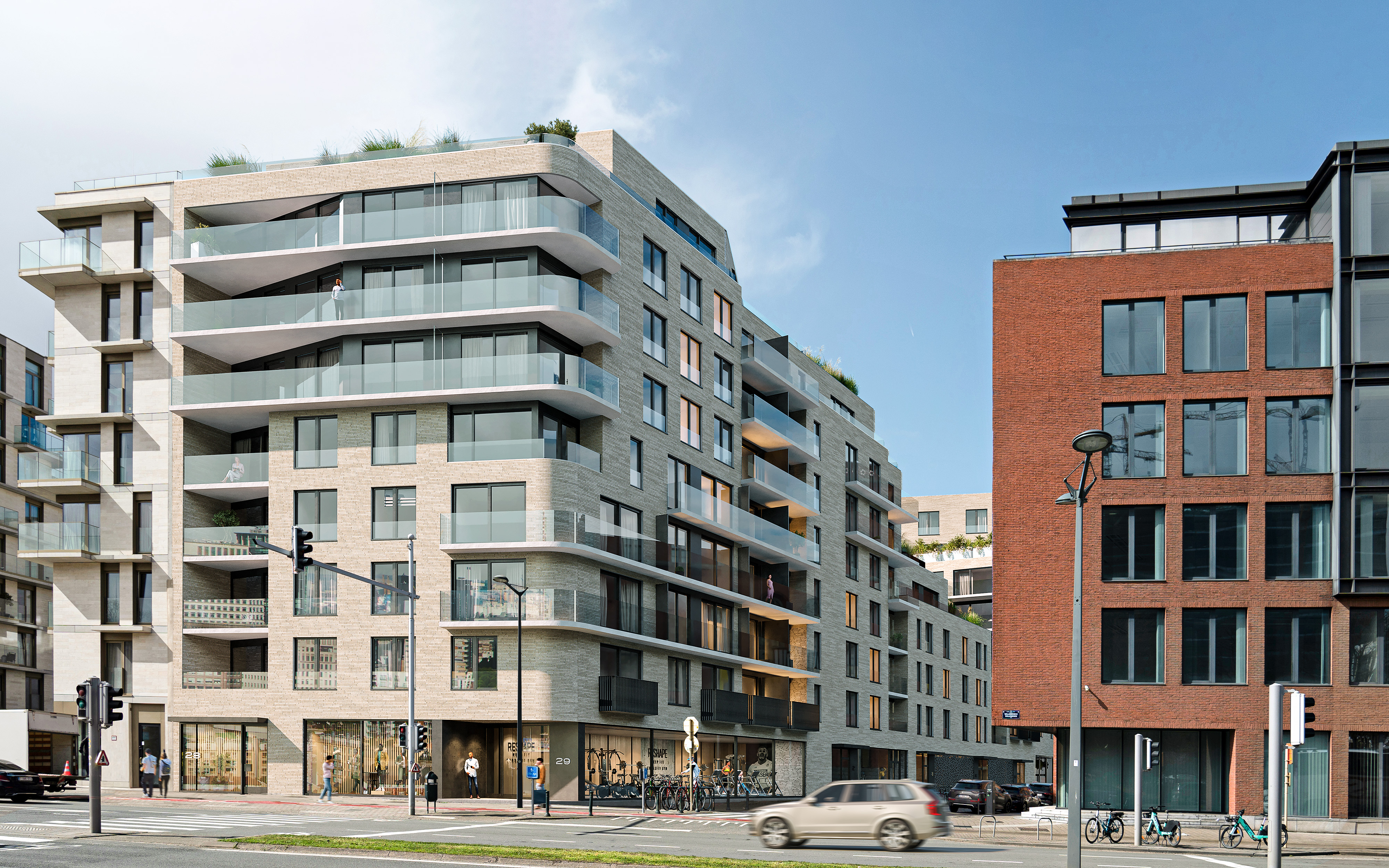 Pour les automobilistes, le petit ring et les grands axes d’accès sont rapidement atteignables, tandis que les pistes cyclables le long du canal offrent un trajet confortable et vert, avec la vélosuperroute F1 à proximité. Sur le site même, de grands parkings à vélos, des places de stationnement prêtes pour véhicules électriques et des options de mobilité partagée sont disponibles juste à côté.