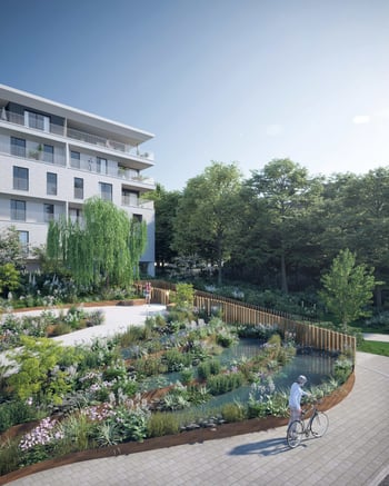 La localisation du projet The W offre un compromis idéal entre la tranquillité de la campagne et l'effervescence de la vie urbaine. À la fois proche du centre-ville et entouré d'un cadre verdoyant, notamment grâce à la présence du Parc Malou, il offre un environnement paisible et agréable.